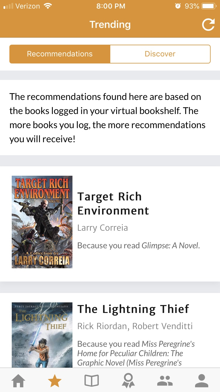 Next up is the Trending page. This allows you to see recommendations based on your virtual bookshelf or you can scroll through a list of books that have been reviewed by fellow BookThinkers. I LOVE the list that appears based on my personal bookshelf the most! This is definitely a feature that I am going to be using more often!