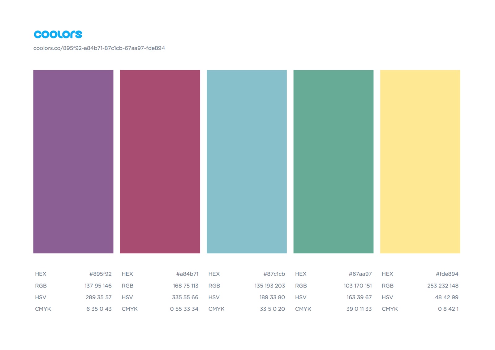 I personally export as a PDF, which allows you to see both your wonderful new color palette and all the codes that you may need! Here is mine for a visual:
