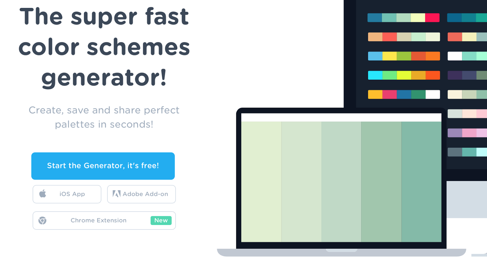 Click the blue “Start the Generator, it’s free!” button to get started! On the next page, you will see five slots of colors, like the laptop screen shows above.
