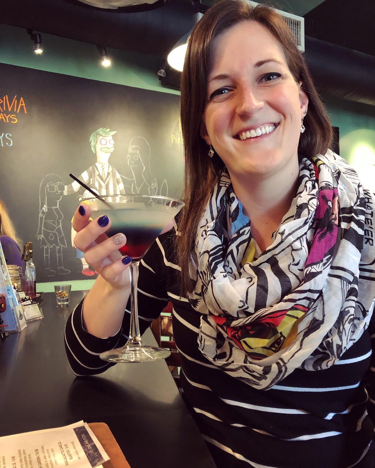 - While on our staycation after the wedding, we popped into a great local pizza shop called the Flying Saucer Pizza Company. They had a killer drink list! One of them was called the Captain America… so of of course I had to get one! And yes, that is a Marvel scarf that I’m wearing π